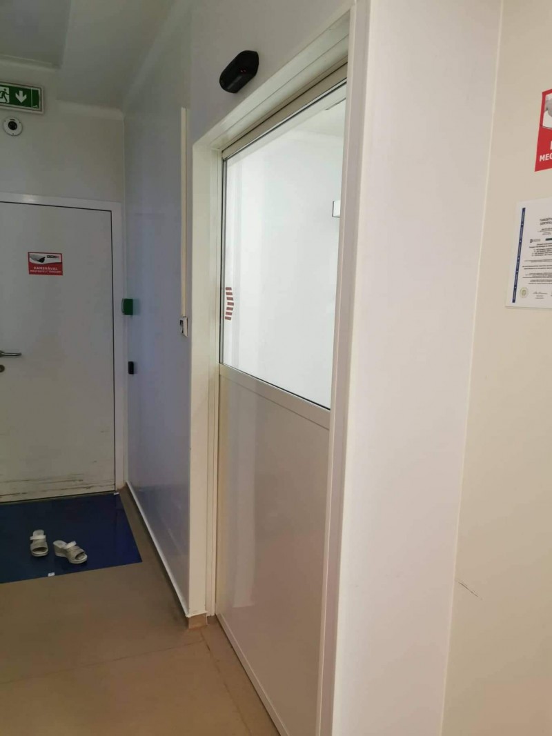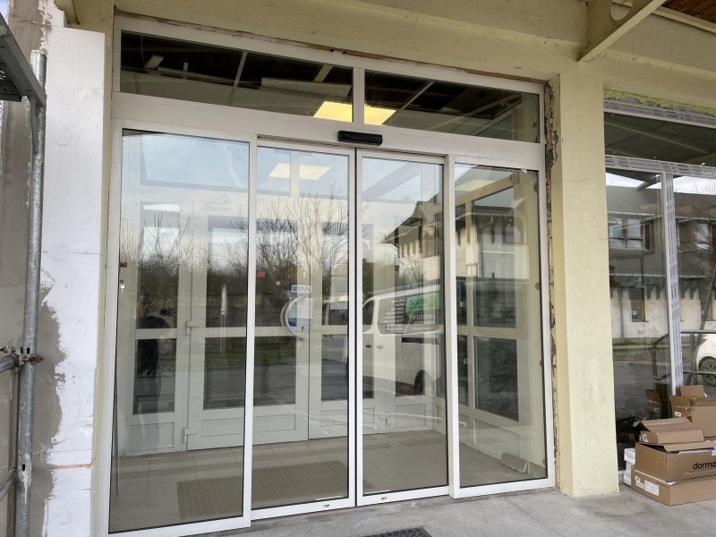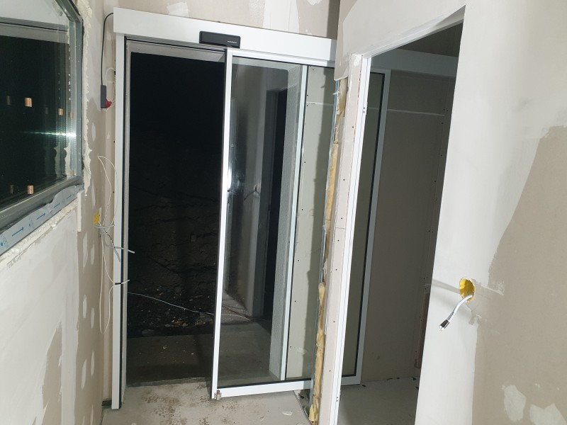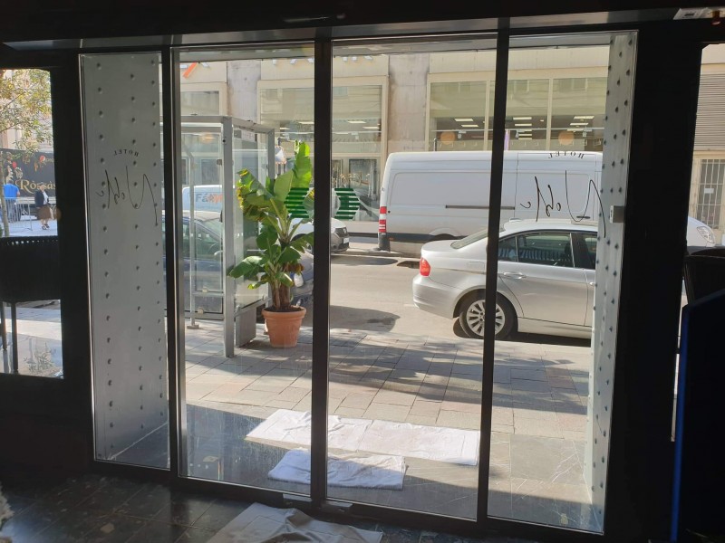 A keret nélküli fotocellás automata üvegajtó esetében 10mm vastag edzett üveget használunk.
